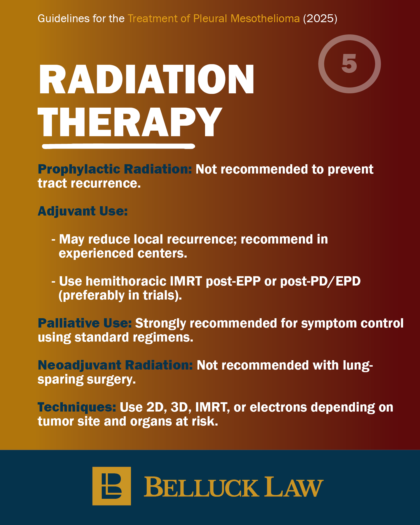 - Use hemithoracic IMRT post-EPP or post-PD/EPD (preferably in trials).